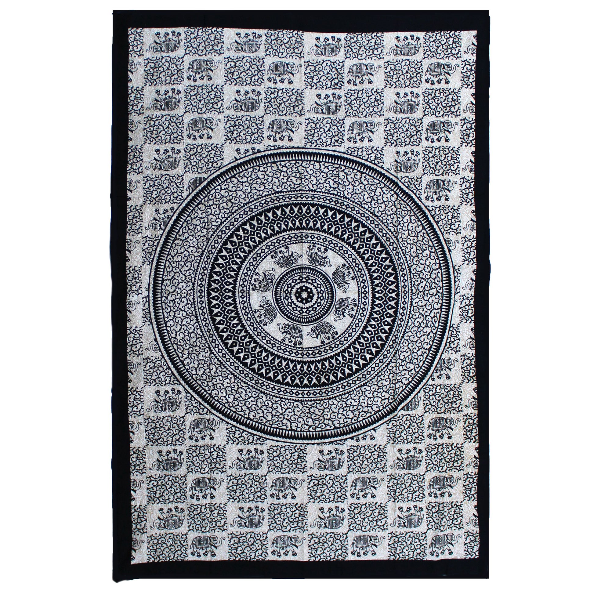 Single Cotton Bedspread + Wall Hanging - Mono - Elephant Mandala